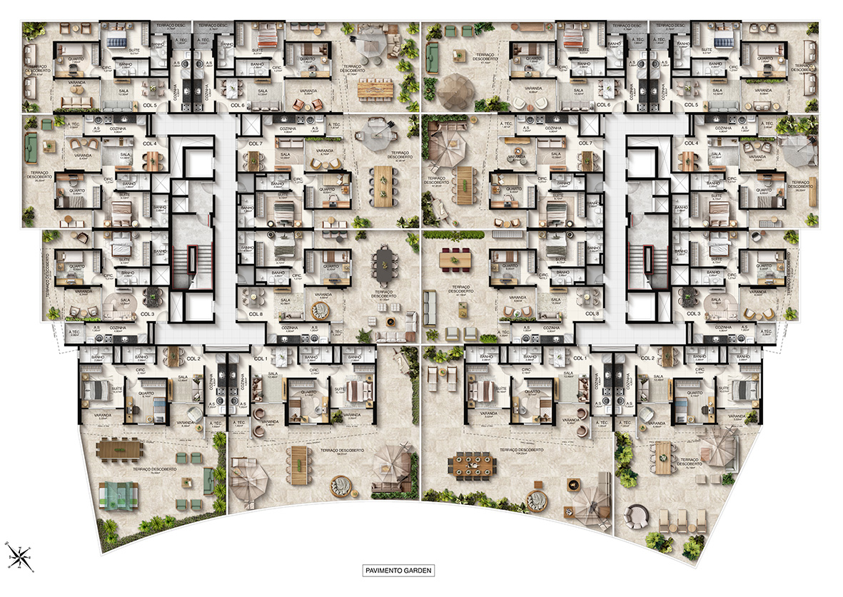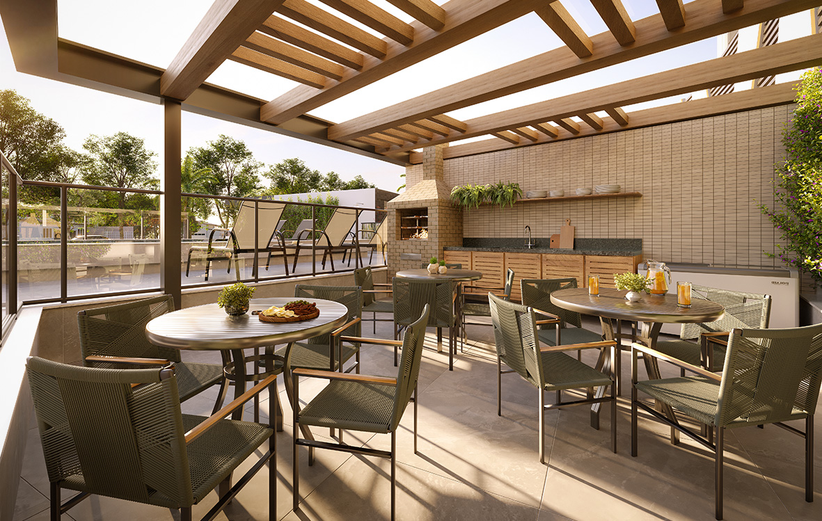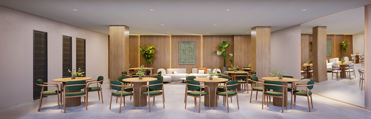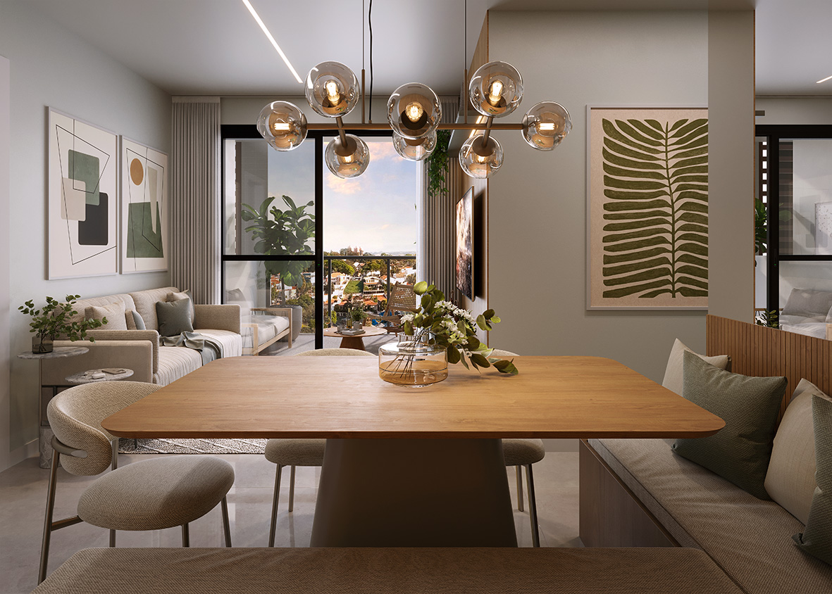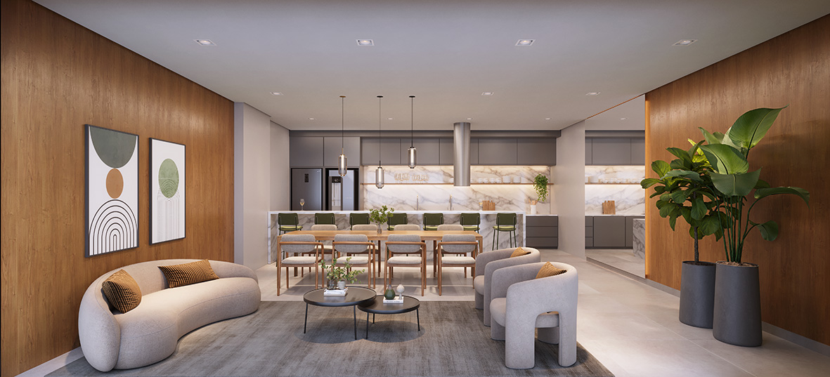 O empreendimento é composto por dois blocos que agregam 44 apartamentos com área total interna de 93 m² até 219 m², 2 a 4 quartos e até 2 suítes. Os imóveis contam com plantas modernas e design refinado, e o condomínio agrega lazer, estacionamento, segurança e um espaço de galeria de arte.