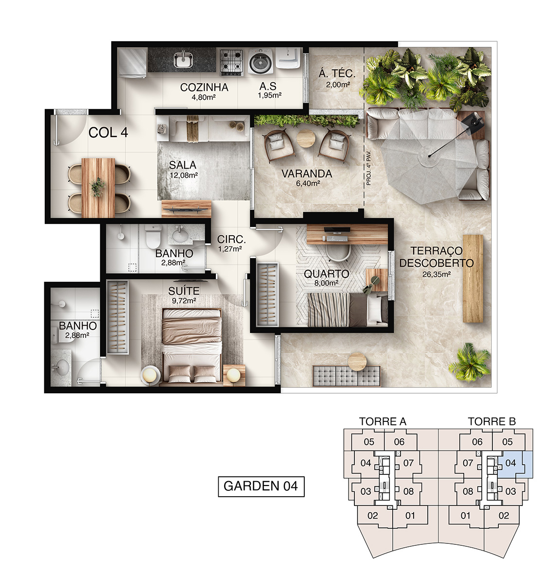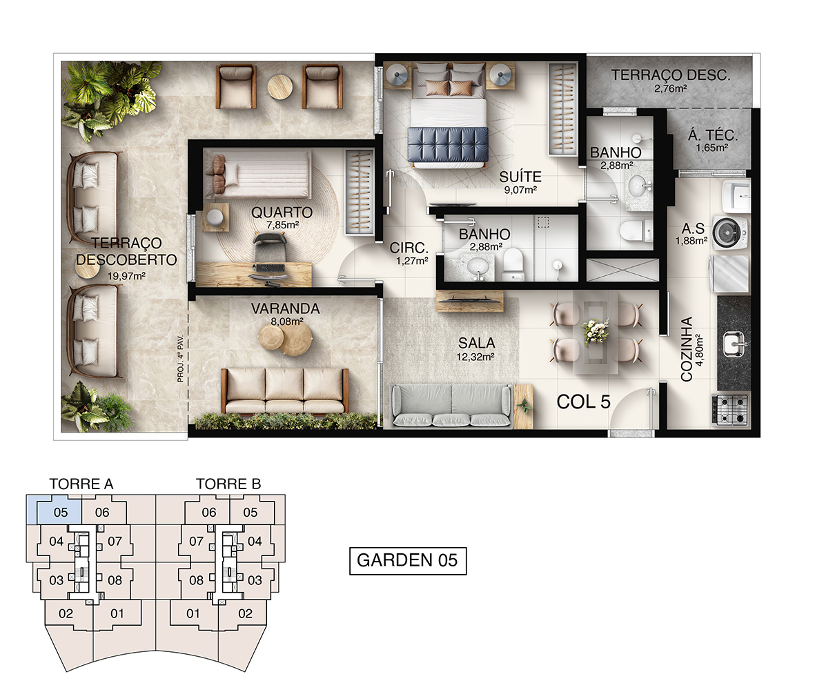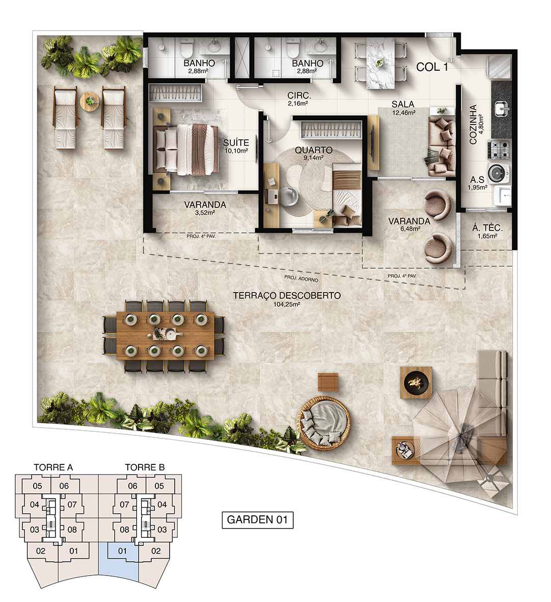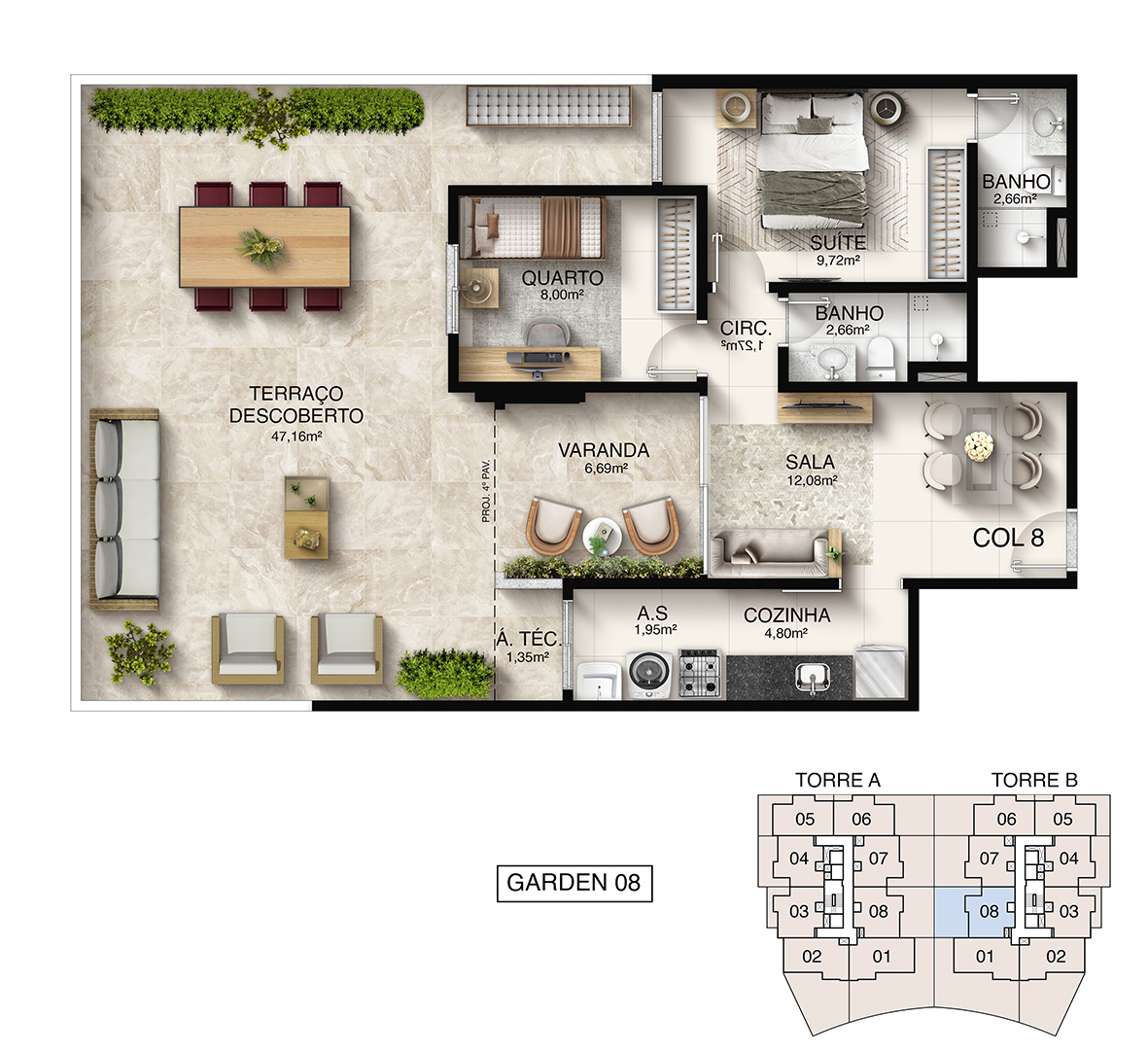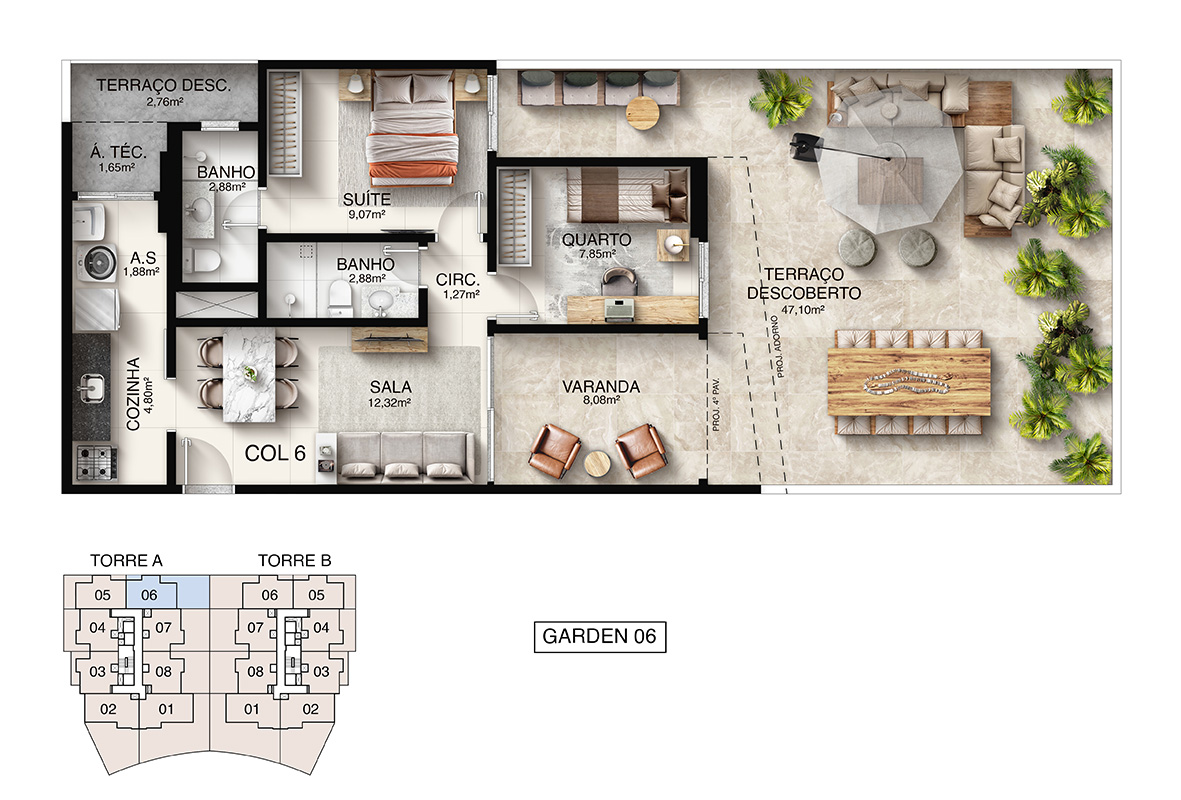 Um projeto imponente em local nobre. Apartamentos emoldurados de forma dinâmica e individualizada, como em uma arte, traduzem a contemporaneidade da obra.